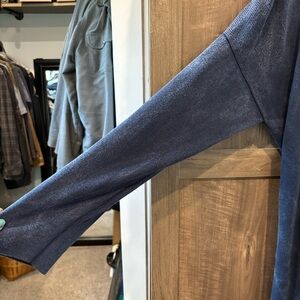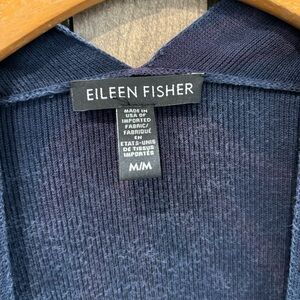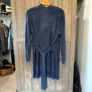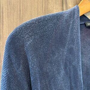Eileen Fisher Medium Blue Ribbed Cardigan Long Line Belted Sweater Tencel