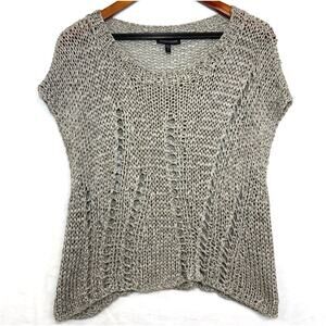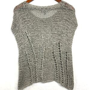 Eileen Fisher Medium Open Knit Beige Top Scoop Dolman Beach Neutral Vacation