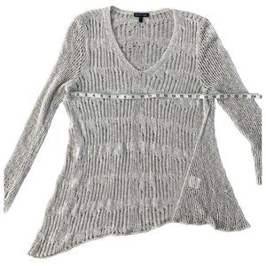 Eileen Fisher Melange Crochet Tunic V-Neck Sweater Linen XL Pebble Asymmetric