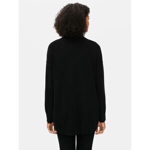 Soft and luxe. A mock neck sweater with an easy fit and high-low hem. Sustainable and warm in merino that meets the Responsible Wool Standard. This sweater is black, I included photos of it in charcoal for easier viewing of the fit and style. In like new condition, no flaws. Very soft and comfortable feeling!