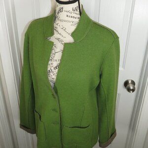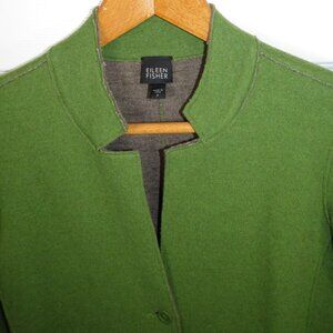 Eileen Fisher Merino Wool Blend Green Pockets Cardigan Size Small