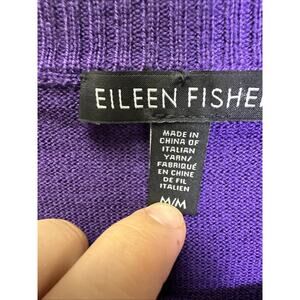 Eileen Fisher Merino Wool Boxy Crew Neck Sweater M Purple Preppy Minimalist