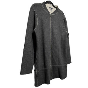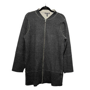 Eileen Fisher Merino Wool / Size- Small Petite / Color- Dark Grey / Pre-Owned In Good Condition / Zip Up, 2 Front Pockets, Lightweight / 96% Merino Wool, 4% Nylon / OverSize Fit / Minimalist Wear