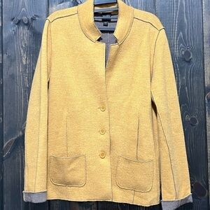 Eileen Fisher Merino Wool Jacket L Camel Tan Button Pockets Neutral Minimalist