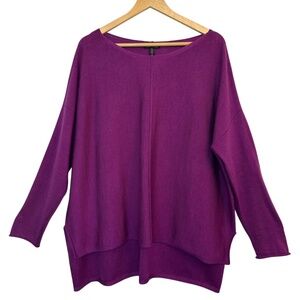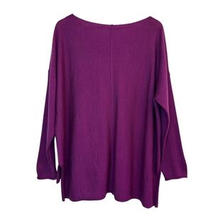 Eileen Fisher Merino Wool Purple Pullover Top Sweater Slits, Boxy, Relaxed Fit, Women's Size L Large, Hi Low hem, Round Neckline, Drop shoulder, Lightweight, Soft.