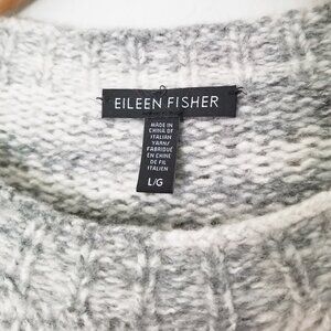Eileen Fisher Merino Wool Silk Blend Marled Gray Sweater L Cozy Warm Crew $375