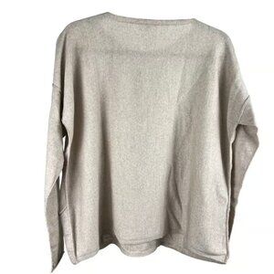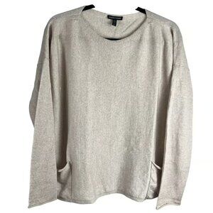 Eileen Fisher Merino Wool Sweater Womens M Beige Long Sleeve Pockets *Repaired*