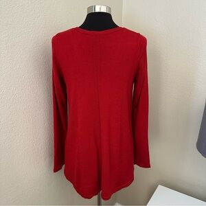 Eileen Fisher Merino Wool Vibrant Red Bell Hem Knit Tunic Sweater Size L/P