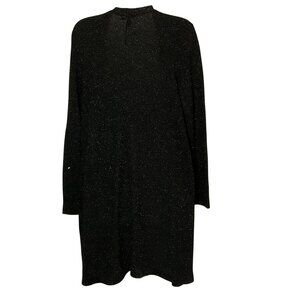 Eileen Fisher Metallic Black Open knit cardigan sweater holiday large NWOT wool