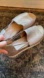 Very gently preowned Eileen Fisher sandals. A subtle metallic gold color with contrast white platform sole. Women’s size 6. No flaws.