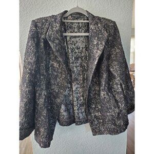 Eileen Fisher Metallic Jacquard Blazer Open Front Jacket In Size Large