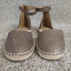Eileen Fisher Metallic Lala Espadrille Flats Sandals Zip Back 8.5 Taupe