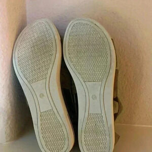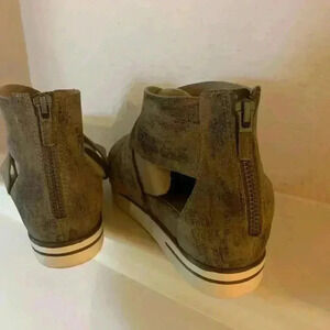 Great used condition. Metallic sandals feature zipper closure on the back. Size 6 1/2. I believe these run small as I’m a true size 6 and these fit perfectly. Color is brown/tan with metallic.