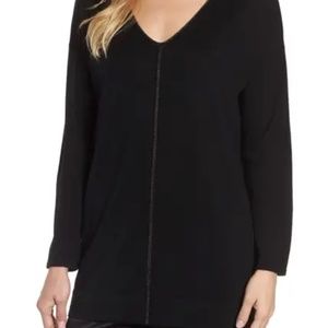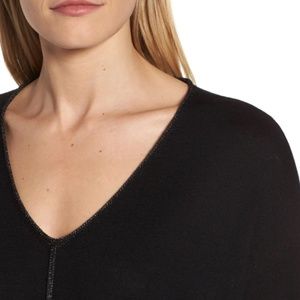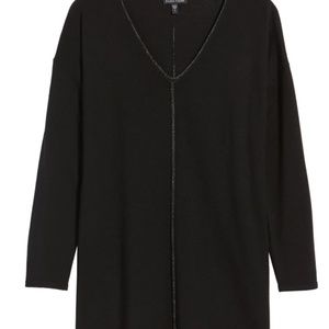 Eileen Fisher Metallic Trim Black Merino Wool V-neck oversized sweater XL NWT