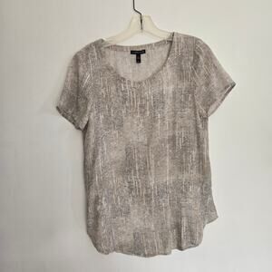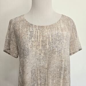 Eileen Fisher Metaphor Silk Blouse Printed Neutrals Relaxed Fit Gray Women XS