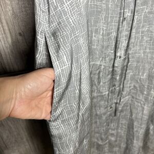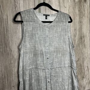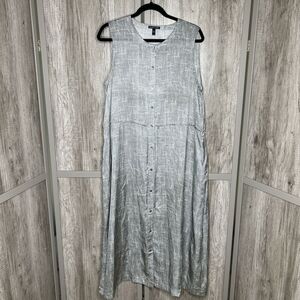 Eileen Fisher Midi Dress Size M Shirred Waist Button Down Silk Cotton Gray