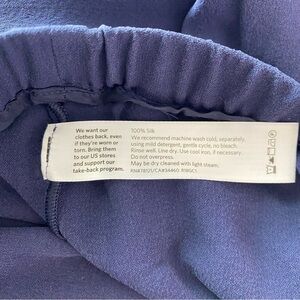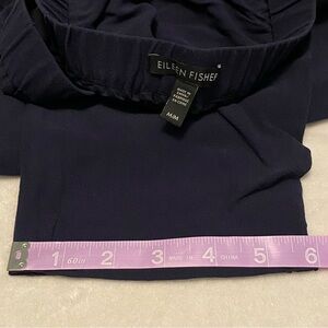 Eileen Fisher Midnight Navy Silk Pull On Ankle Pants. Elevate your wardrobe with these Eileen Fisher High Waist Midnight Ankle Pants. This modern piece features a solid pattern, pull-on closure, elastic waist, and relaxed fit for ultimate comfort. The silk material and breathable design make it a versatile piece for all seasons, whether it's for travel or casual wear. Easy and slouchy, relaxed, yet refined in our washable silk. Pull-on style with tapered leg silhouette. I also have these available in black. Stock photos included to show fit. New without tags.