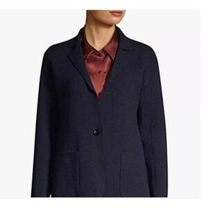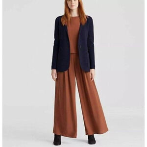 Eileen Fisher Midnight Notch Collar Cardigan Sweater Merino Wool PP Petite Small