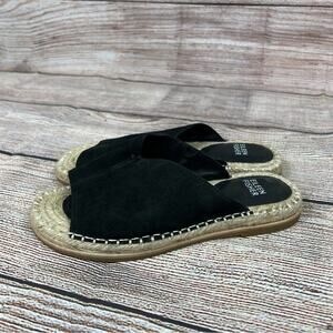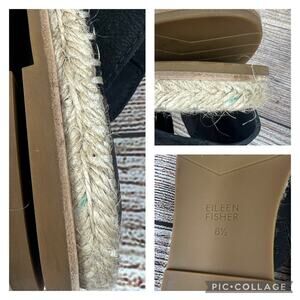 Eileen Fisher Milly Black Tumbled Nubuck Leather Espadrille Sandal Size 6.5