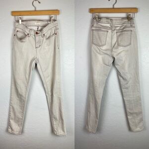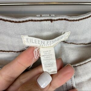 These Eileen Fisher Light Grey Mineral Wash Stretch Skinny Jeans feature contrast stitching