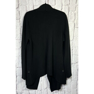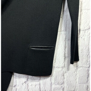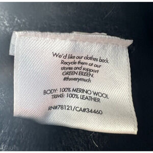 Eileen Fisher Minimalist MERINO Wool Open-Front Cardigan Pockets Leather Trim L