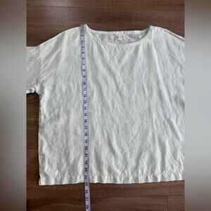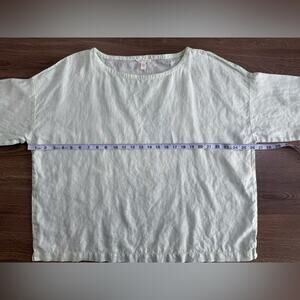 Eileen Fisher Mint Green Short Drop Sleeve Boxy Relaxed Blouse 100% Linen Size M