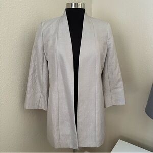 Eileen Fisher Mirage Jacquard Silk Blend 3/4 Sleeves Open Blazer Jacket.