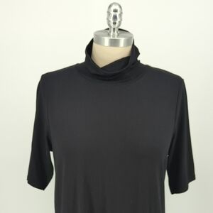 Eileen Fisher Mock Neck Jersey Knit Tunic Dress Black PM preppy minimalist