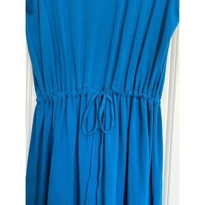 Eileen Fisher Mock Neck Tie Waist Sleeveless Dress Marine Blue $178 - L NWT