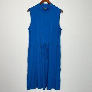 Eileen Fisher Mock Neck Tie Waist Sleeveless Knee Length Dress Marine Blue L