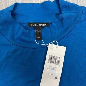 NWT Eileen Fisher Mock Neck Tie Waist Sleeveless Knee Length Dress Marine Blue L