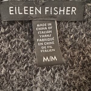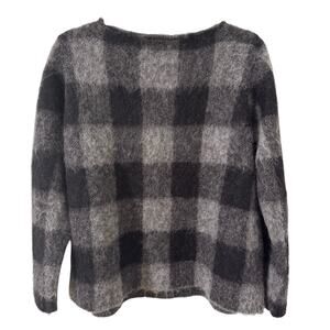 Eileen Fisher Mohair Alpaca Blend Check Plaid Sweater Black Gray Size Medium