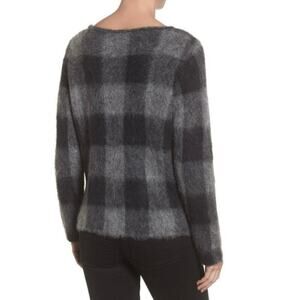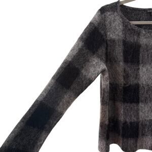 Eileen Fisher Mohair Alpaca Blend Check Plaid Sweater Black Gray Size Medium