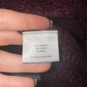 Eileen Fisher Mohair Open Knit Cowl Neck Sweater - Burgundy M. This item is pre-owned in excellent condition.