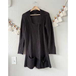 Eileen Fisher Mohair Wool Open Knit Snap Button Longline Cardigan Deep Purple S