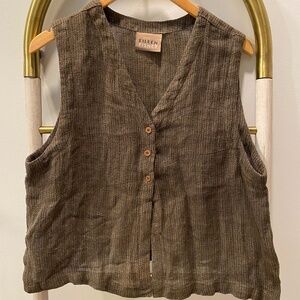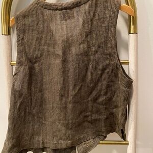 Eileen Fisher Multico Linen Blend Sleeveless 3 Button Vest Shirt Top Blouse Sz M