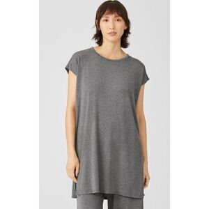 Eileen Fisher NWT Fine Jersey Crew Neck Long Top Boxy Fit Thigh Length PS