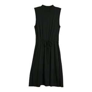 Eileen Fisher NWT Mock Neck Drawstring Tie Waist Black Size XS Sleeveless