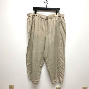 Eileen Fisher Natural Beige Organic Linen Elastic Waist Pull On Lantern Pants 2X