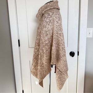 Eileen Fisher Natural Funnel Neck Poncho Organic Cotton Alpaca Lagenlook Oatmeal
