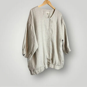Eileen Fisher | Natural Twinkle Woven Linen Jacket Round Neck 3/4 Sleeve