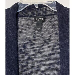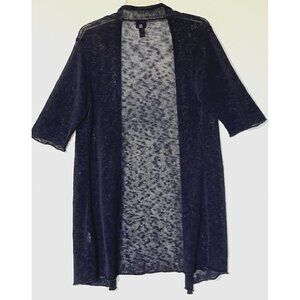 Eileen Fisher Navy Blue Linen Cotton blend Open Long Cardigan Sweater