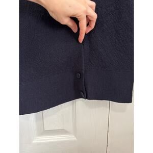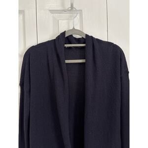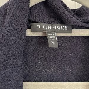 Eileen Fisher Navy Blue Open-Front Textured Drapey Wool Cardigan XS