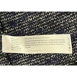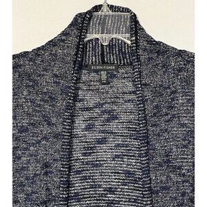 Eileen Fisher Navy Ivory Marled Linen blend Knit Open Duster Cardigan