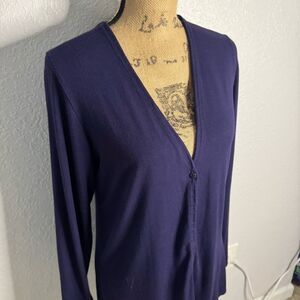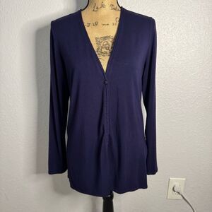 Eileen Fisher Navy Long Sleeve Cardigan 1 Button V Neck Stretch Rayon Size M