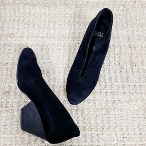 Eileen Fisher Nelson Ankle Bootie 7.5 Black Suede Slip-On Closed-Toe Block Heel