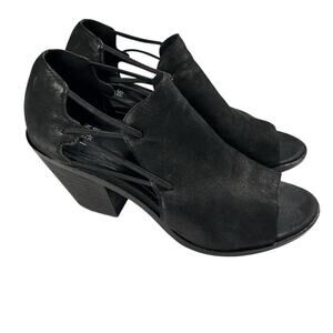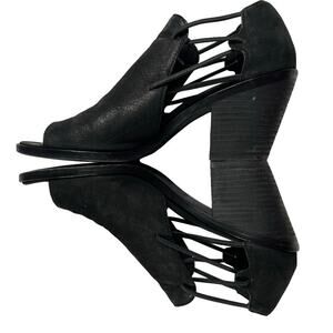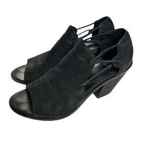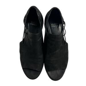 Eileen Fisher Nikki leather Peep Toe Cutout elastic Strappy Block Heels Size 7.5