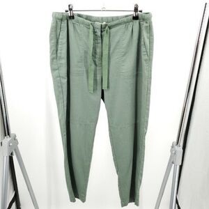 Eileen Fisher Nori 100% Organic Cotton Relaxed Fit Ankle Pants MP Green, good used condition with light wear, no flaws. Details: Eileen Fisher size MP GUC/light wear - 100% organic cotton - elastisized drawstring waist - zip fly - side hand pockets - cropped - relaxed fit - single back patch pocket - muted sage green color - straight leg Measurements (approx., flat lay): Waist: 16" Rise: 10" Inseam: 25" Leg opening: 6"