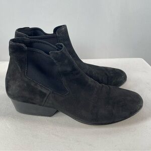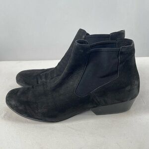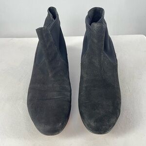 Eileen Fisher Nubuck Leather Stacked Heel Bootie in Black Size 9.5