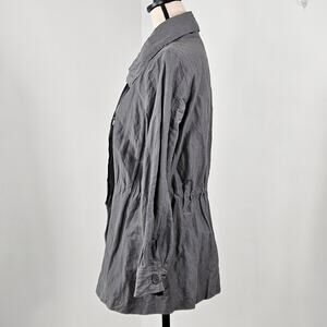 Eileen Fisher Olive Green Button-Up Windbreaker Jacket Coat | Women's Small